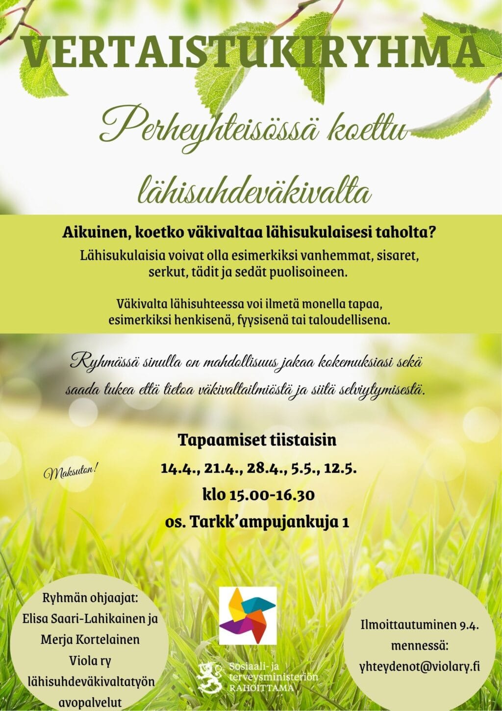 Ilmoittautuminen ryhmään 9.4. mennessä: yhteydenotot@violary.fi